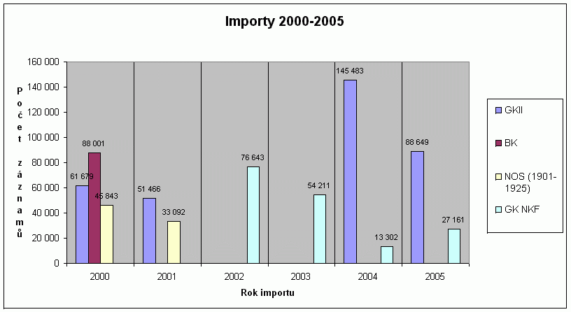 Grafické vyjádření importů záznamů z retrokonverze do báze NKC