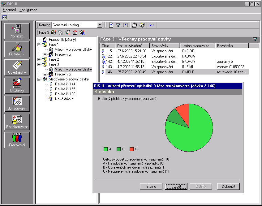 Grafické vyjádření statistického vyhodnocení zpracované dávkyGrafické vyjádření statistického vyhodnocení zpracované dávky Akce dokumentů |