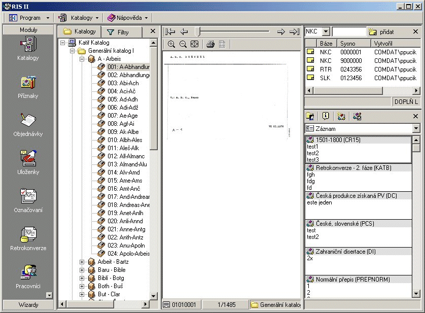 Údaje o jednotlivém záznamu v rámci celého katalogu