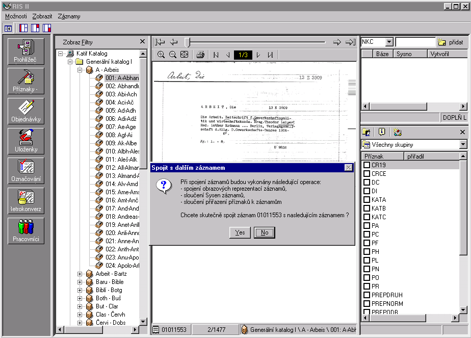 Údaje o jednotlivém záznamu v rámci celého katalogu