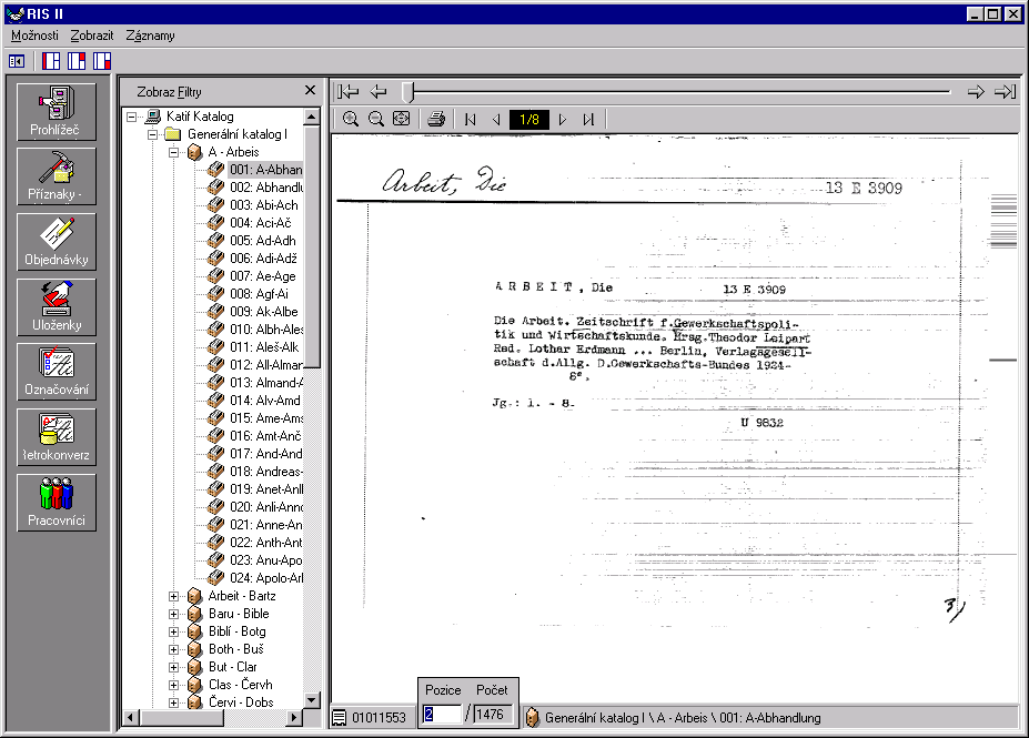 Údaje o jednotlivém záznamu v rámci celého katalogu